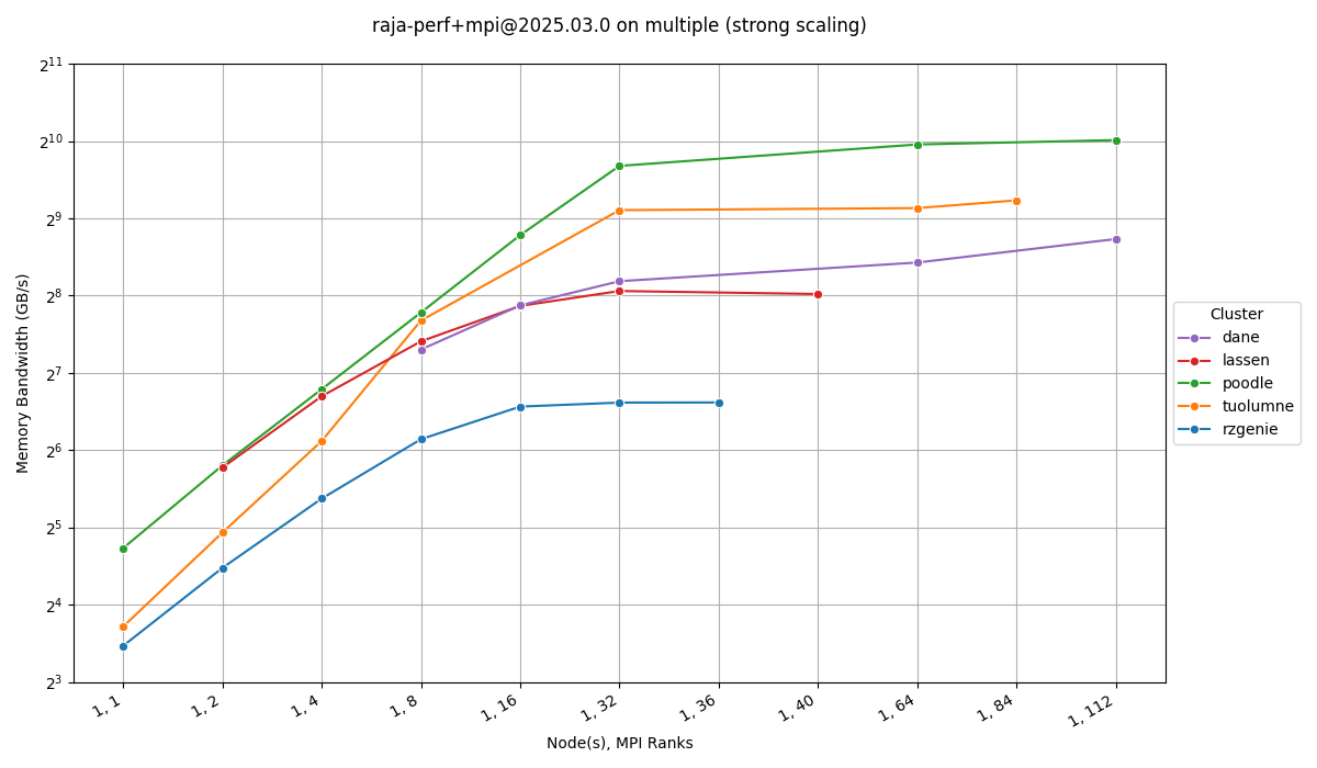 Constant information will be contained in the title, such as benchmark, programming model, benchmark version, cluster, etc.